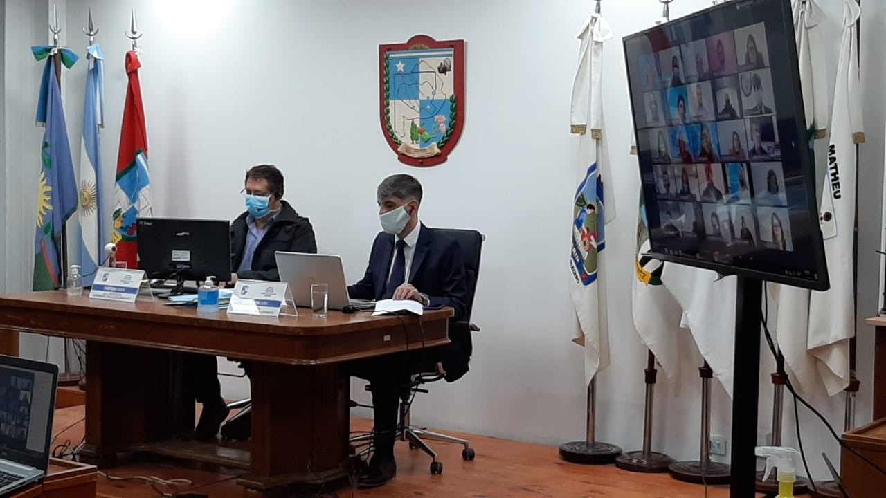 En el recinto del Concejo Deliberante se desempeñaron su presidente, concejal Luis Carranza, junto al secretario legislativo, Hugo Cantero; el presidente del bloque Frente de Todos, concejal Nicolás Serruya; la presidenta del bloque Juntos por el Cambio, Yesica Avejera; la concejal Carina Chmit y el concejal Diego Castagnaro. En tanto el resto de los concejales y las concejalas participaron de manera virtual, a través de la plataforma Zoom.