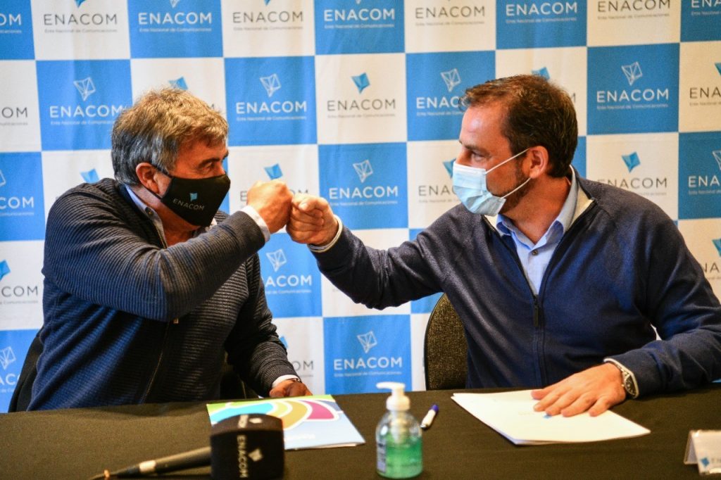 En la sala B del Teatro Seminari Cine Italia, el intendente Ariel Sujarchuk y el presidente del Ente Nacional de Comunicaciones (ENACOM), Claudio Ambrosini, firmaron un convenio a través del cual la Municipalidad de Escobar recibió por parte del organismo 4000 tarjetas de telefonía móvil prepagas, con el objetivo de asegurar el acceso a internet de los alumnos que se encuentran realizando sus actividades de manera virtual, en el marco de la emergencia por la pandemia de Covid-19.