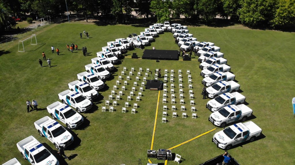 El equipamiento adquirido por el Municipio consta de 35 camionetas blindadas marca Toyota modelo Hilux, que serán destinadas a la Policía de la Provincia de Buenos Aires; 15 camionetas marca Renault modelo Oroch para los equipos municipales de agentes preventores, y 500 nuevas cámaras de seguridad que se suman a los 1200 dispositivos ya instalados en todo el distrito. Por último, se compró una lancha que brindará servicio en la base del Paraná de la Policía de la Provincia.